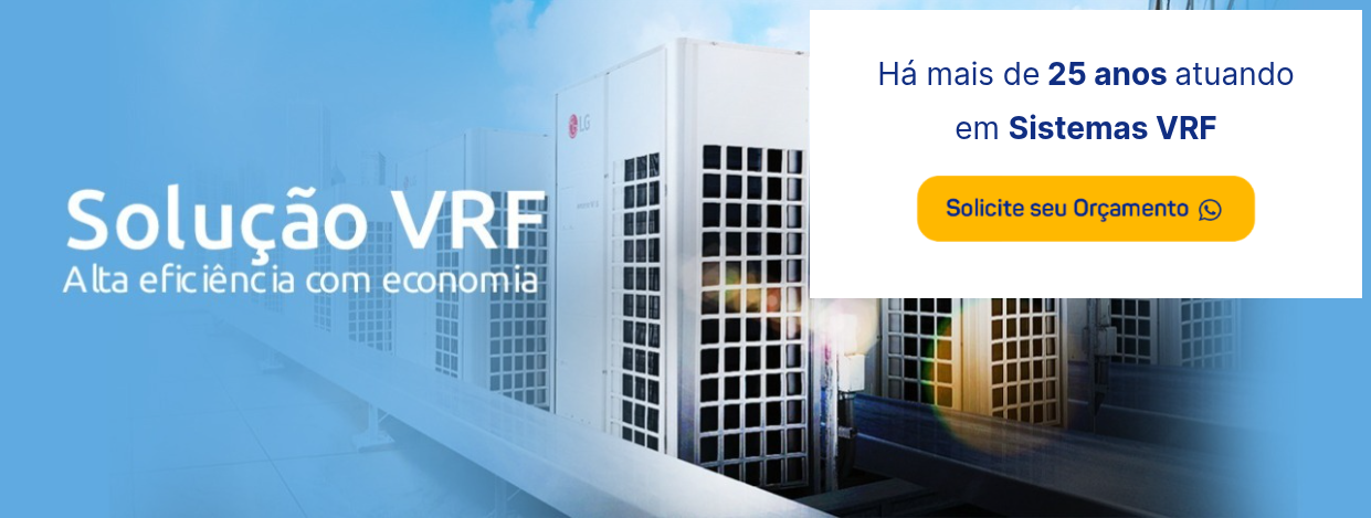 VRF (Fluxo Refrigerante Variável) é um sistema de climatização central indicado para grandes ambientes, sejam residenciais ou comerciais. Ele minimiza as perdas de eficiência, proporciona sustentabilidade e também economia de energia.
